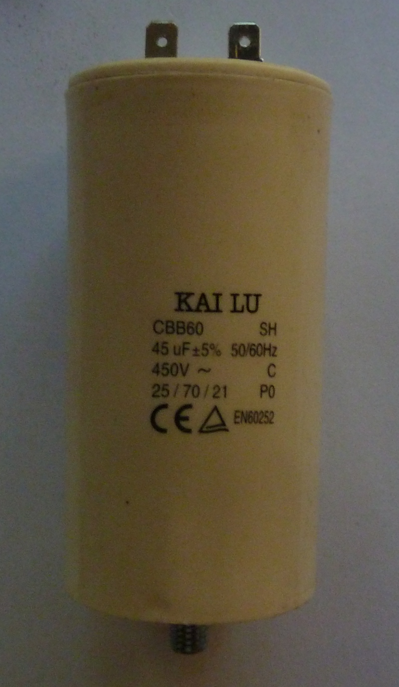 In case you ever need to change the motor capacitor: The capacitor is screwed in, i.e. you turn it counterclockwise to remove it. The component used in my shredder was a: KAI LU, CBB60 SH, 45uF +-5% 50/60HZ, 450V ~ C, 25/70/21 P0 (see photo below). Those things sell around 7-15€ Amazon/AliExpress and there is probably no good reason to pay the inflated “original Bosch” spare part prices.