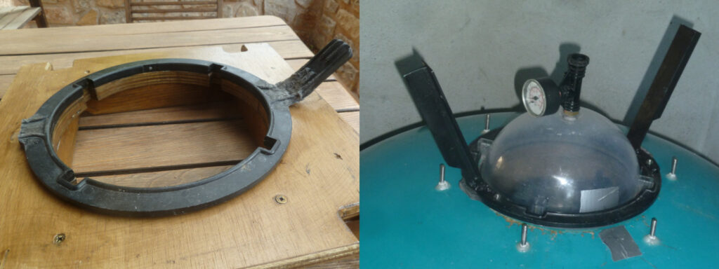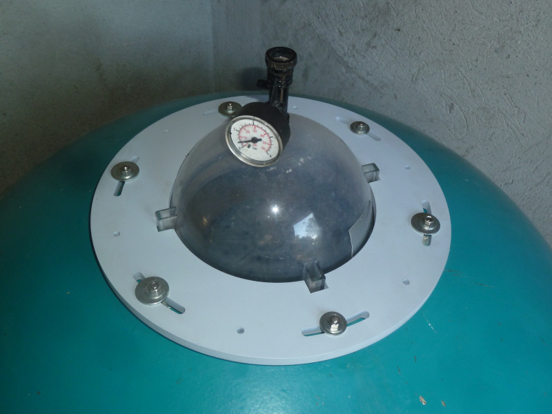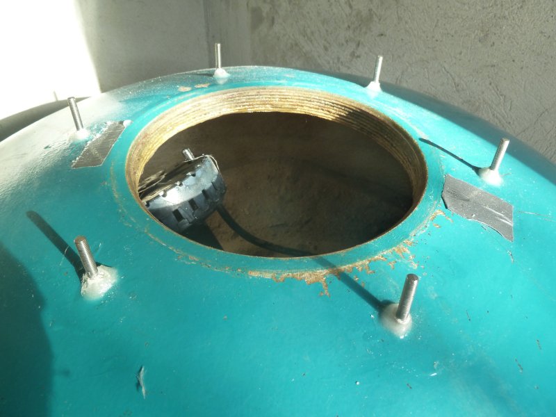 The weak point of the design (which all the products of this manufacturer that I came across seem to share) is the “screw in” plastic lid – in particular the threads that are cut into the brittle fibreglass material: It comes as no surprise (except maybe to a manufacturer with 40 years experience with this kind of thing) that over time the pressurization/depressurization cycles will cause those threads to wear out and at some point they will just no longer be able to hold down the lid under pressure.