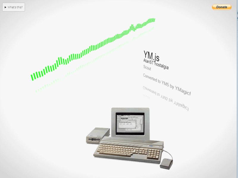The music samples are calculated on the fly by running the YM.js emulation logic. You can bring your own .YM music files by drag&dropping them onto the below AtariST image.